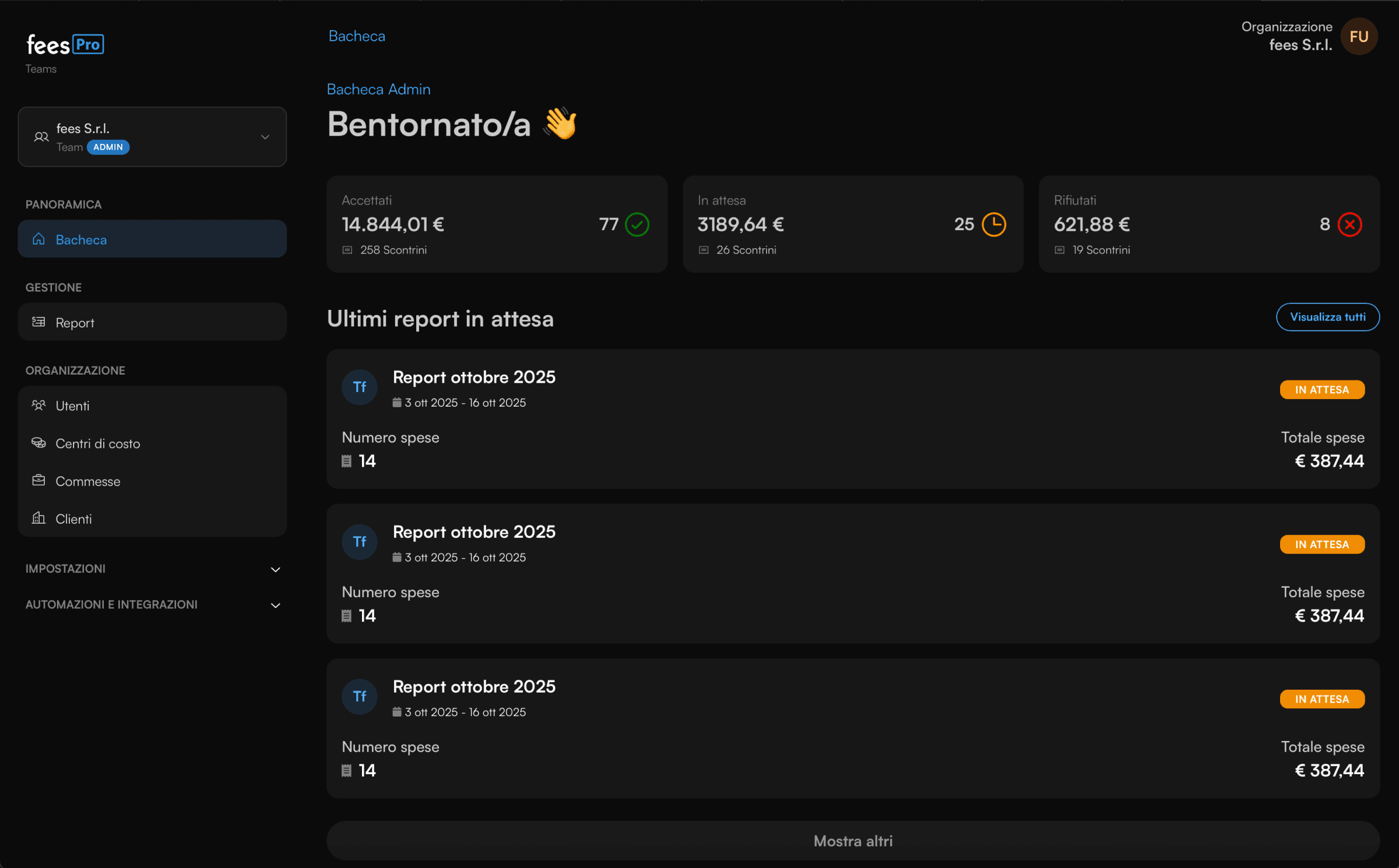 Un unico sistema che si occupa di ogni spesa. La tua, del tuo team o dei tuoi clienti.