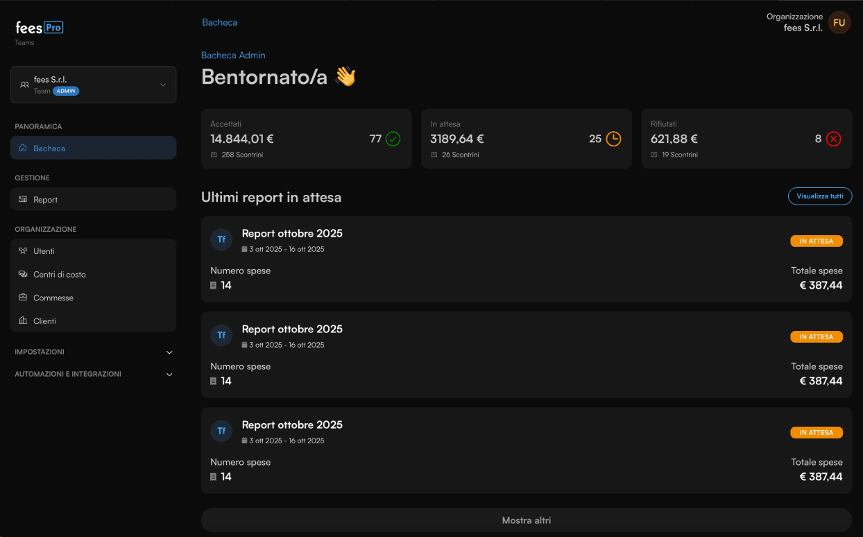 Un solo strumento per controllare ogni spesa. La tua, del tuo team o dei tuoi clienti.