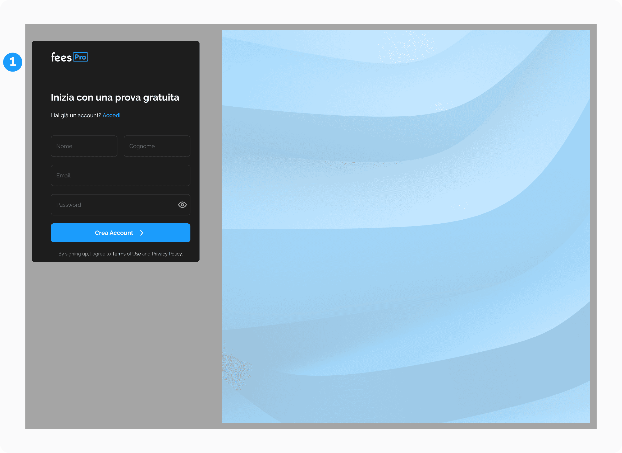 Per iniziare ad accettare pagamenti con fees dovrai semplicemente registrare la tua società al servizio fees Pro, selezionando il piano dalla pagina Prezzi del nostro sito